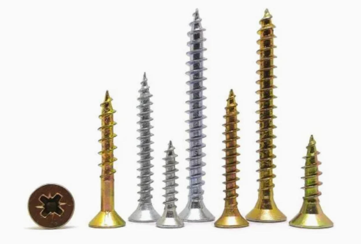 A chipboard screw or particleboard screw is a self tapping screw with a thin shaft and coarse threads. Chipboard is a made up of resin and wood dust or wood chips, so chipboard screws are made to grip this composite material and to resist withdrawing. The screws solidly fasten chipboard to chipboard or chipboard to other materials such as natural wood.