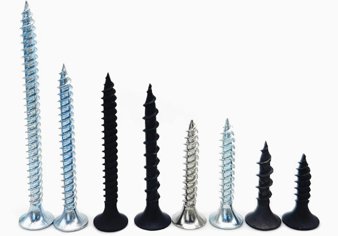Drywall screws are used to secure drywall or gypsum board, preventing crumbling or surface distortion. They are designed to secure to drywall to wood or metal surfaces. Most drywall screws have a fine tip and a tapered bugle head to penetrate drywall without damaging it. Their coarse, wide threads tightly grip both wood and plasterboard. Trim screws have small heads to join wood or composite materials while showing as little nail as possible
