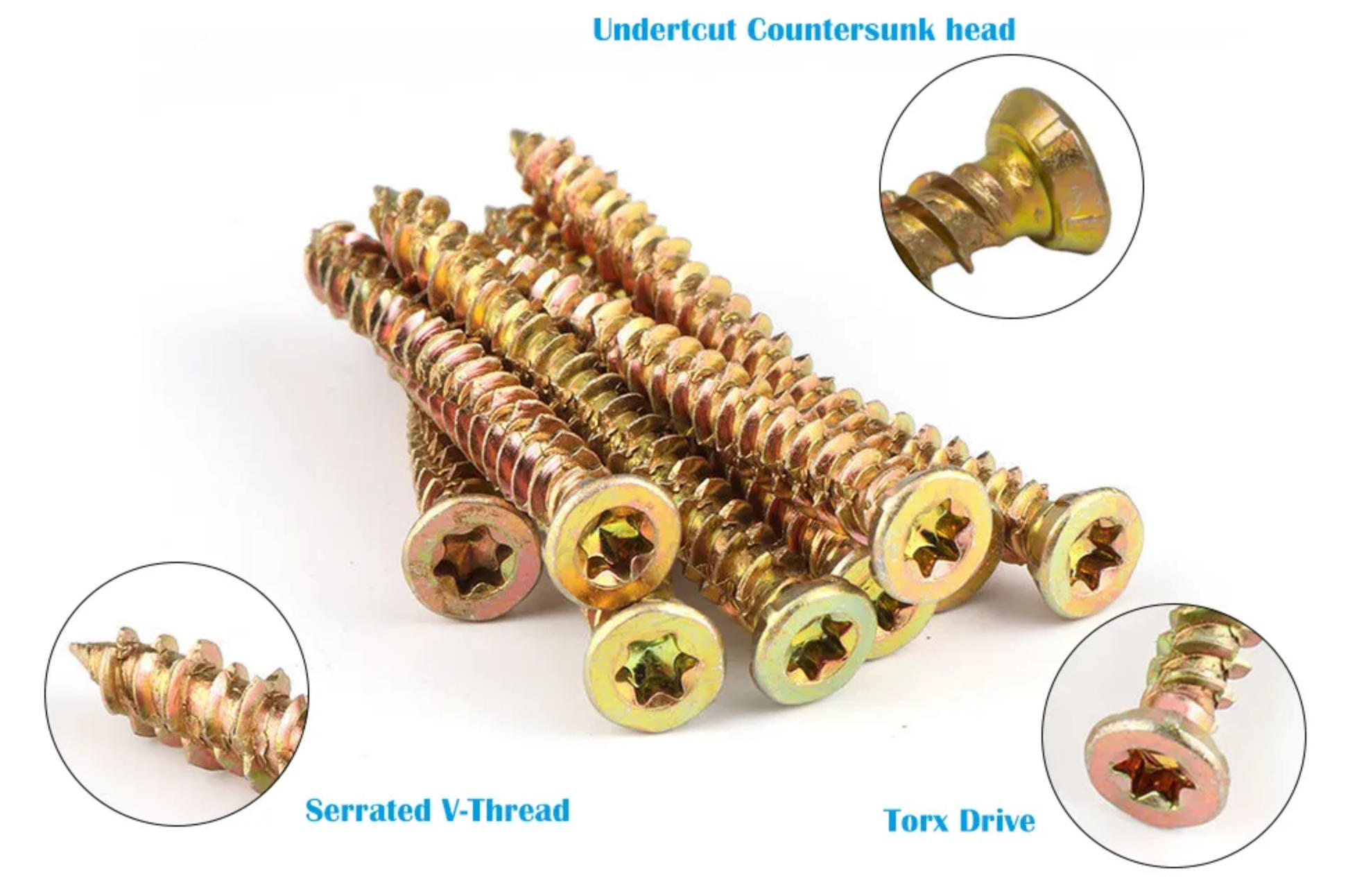 Concrete screws, also known as masonry screws, are a type of fastener that holds one or more objects together or secures an object in place. They are commonly used to fasten certain materials, such as metal or wood, to concrete or masonry.