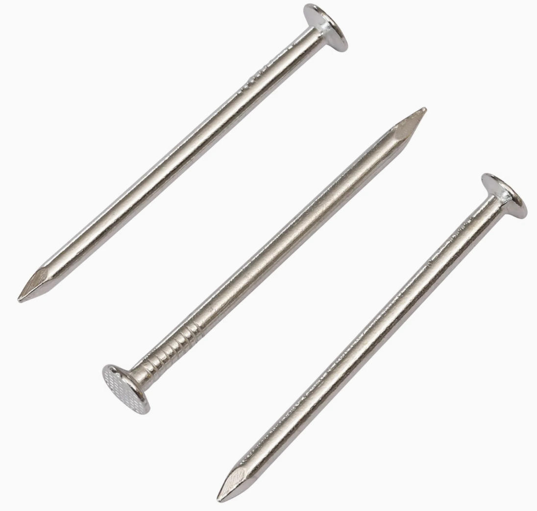 A nail consists of a metal rod or shank, pointed at one end and usually having a formed head at the other, that can be hammered into pieces of wood or other materials to fasten them together.