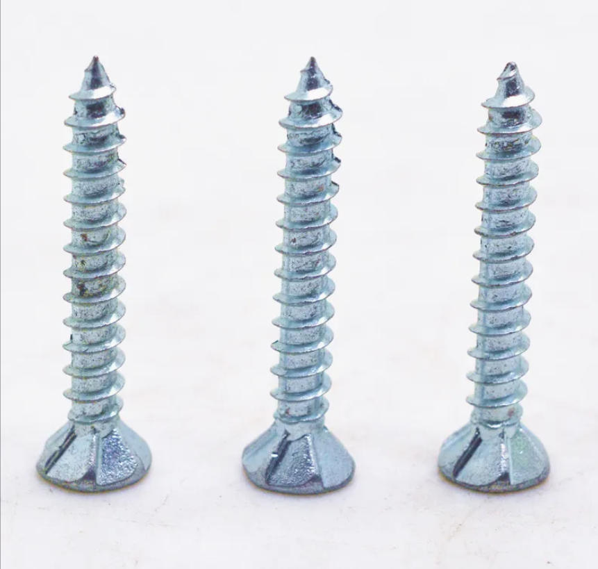 Drywall screws self drilling are commonly used variety of screw for quick drilling into both metal and wood. A self drilling screw can typically be identified by its point and flute (notch) tip. This tip acts as a drill bit for the screw making it much faster to install then having to switch between a drill bit and driver bit.