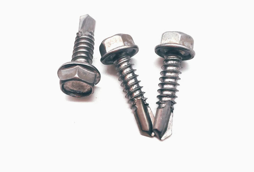 Self drilling screws are a commonly used variety of screw for quick drilling into both metal and wood. A self drilling screw can typically be identified by its point and flute (notch) tip. This tip acts as a drill bit for the screw making it much faster to install then having to switch between a drill bit and driver bit.