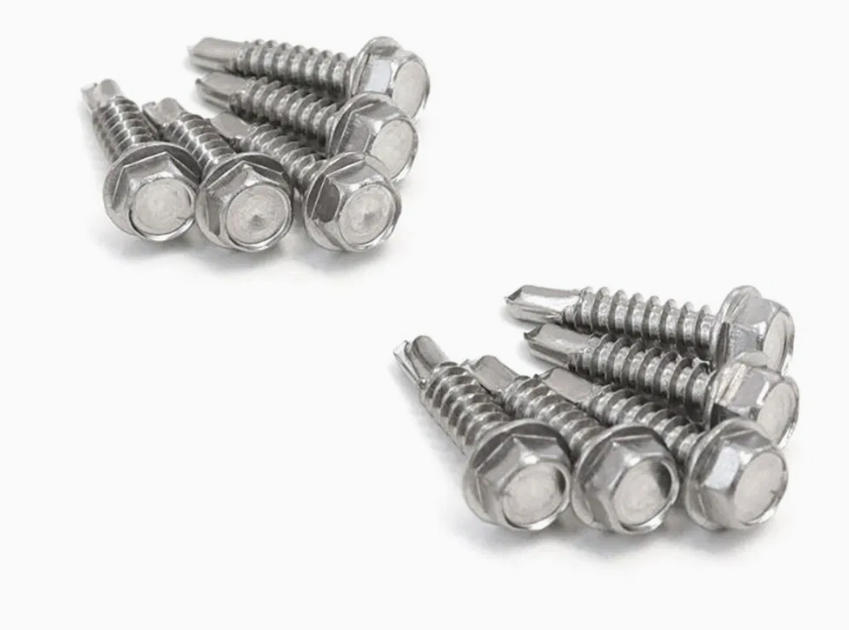Hex flange head self drilling screws are a time saver eliminating both the steps of drilling (in most cases) and tapping a hole prior to installation. This also eliminates the need for drill bits and taps and switching between them for each hole.The notched area in the tip acts as a reservoir to receive wood chips or metal filings. This creates the space necessary to drill/screw the screw all the way into place.